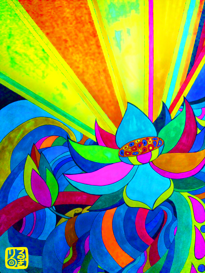 水と光をテーマにサイケデリック調に描いたもの