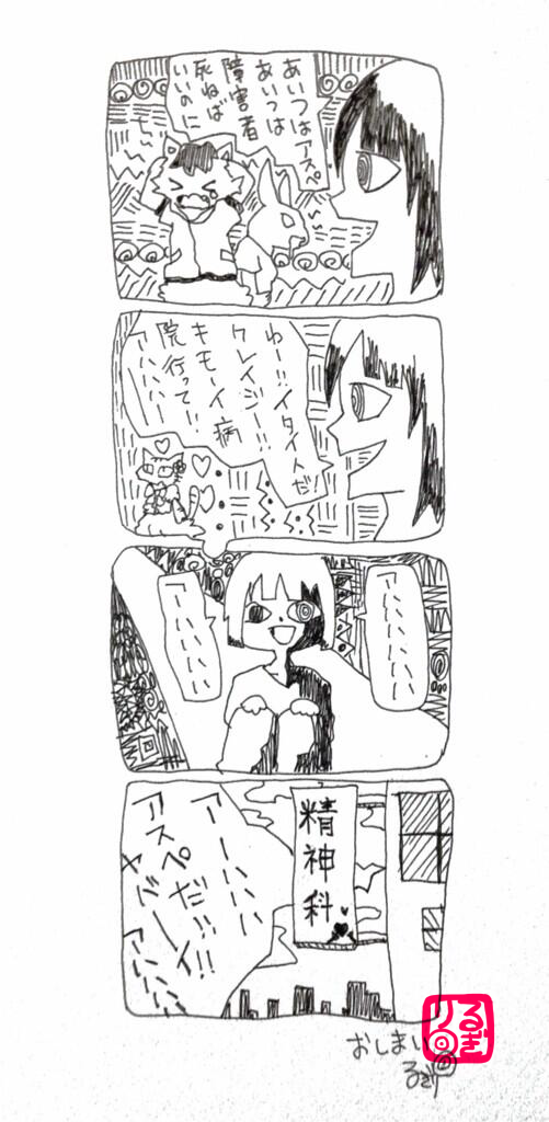 精神科行けとか人を障害者と煽りまくってた人が実は精神病棟の奥深くで妄想の世界にいるってオチの大人気ない漫画です